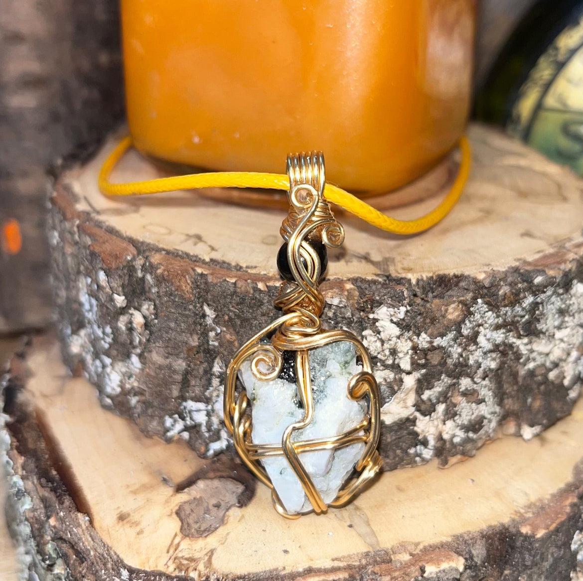 The Crystal- Rainbow moonstone is thought to bring balance, harmony and hope while enhancing creativity, compassion, endurance and inner confidence. Rainbow moonstone is believed to help strengthen intuition and psychic perception, especially offering us visions of things that aren't immediately obvious.